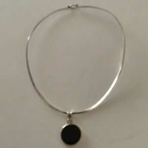 STERLING SILVER AND BLACK GLASS PENDANT AND COLLAR