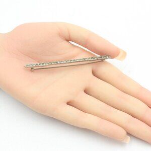 A one of a kind piece! Featuring this antique pin made during the Art Deco era. The piece is crafted from sterling silver metal adorned with paste glass. This has a "Sterling" marking at the back. This piece is tarnished and has a rolling pin clasp. This measures 3" long by 1/8" wide.