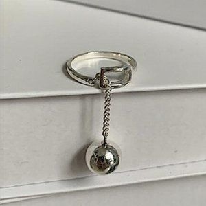 STERLING SILVER BALL CHARM ADJUSTABLE RING