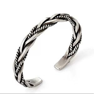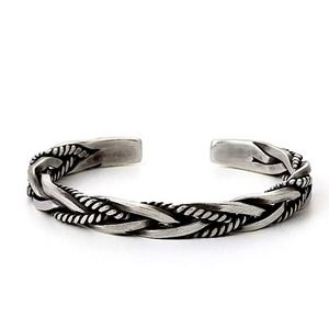 STERLING SILVER BRAIDED BANGLE CUFF BRACELET