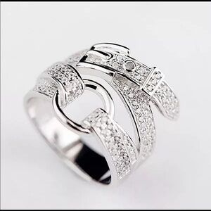 Sterling Silver Cubic zirconia belt buckle ring is adjustable in size.