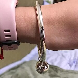 Sterling Silver drop ball bangle sizes vary from 6”- 9”.