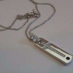 STERLING SILVER CROSS NECKLACE PENDANT W/ .75 cts LAB CREATED DIAMONDS/ 18 INCH