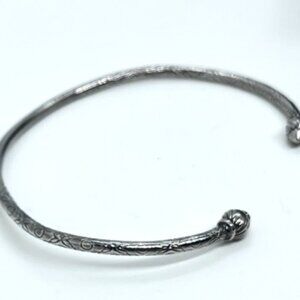 STERLING SILVER CUFF Bracelet Engraved Floral Open Bangle Artisan Torque AJ 925