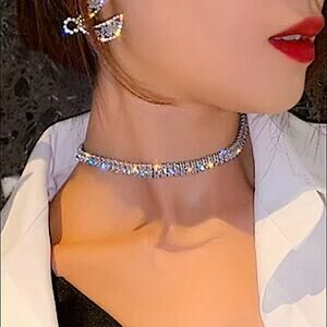 STERLING SILVER DIAMOND ZIRCON RHINESTONE CHOKER NECKLACES