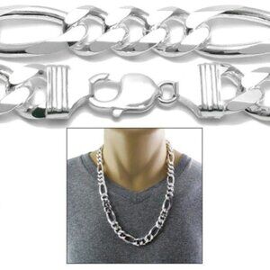 STERLING SILVER FIGARO CHAIN NECKLACE 14MM (GAUGE 400). AVAILABLE IN 5 LENGTHS.