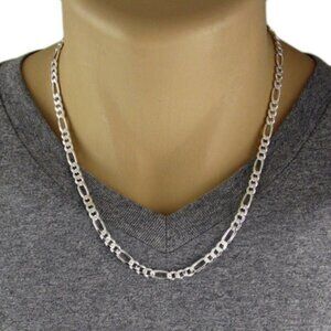 Classic 3+1 Figaro Chain. Ideal for pendants, charms, hanging a ring, or by itself. Sterling Silver. Made in Italy.