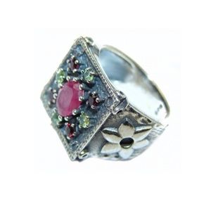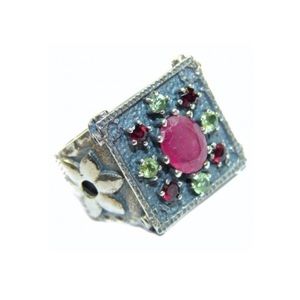 STERLING SILVER GARNET & PERIDOT STATEMENT RING
