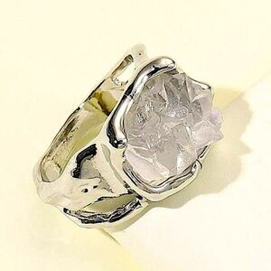 STERLING SILVER IRREGULAR CRYSTAL STONE RING