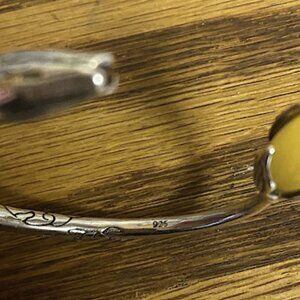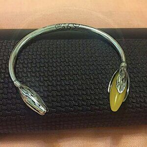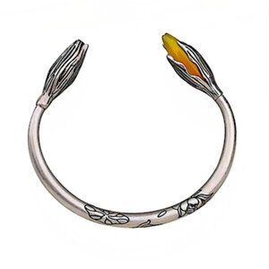 STERLING SILVER JADE FLOWER BANGLE BRACELET