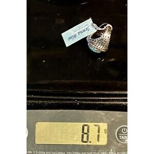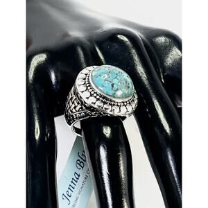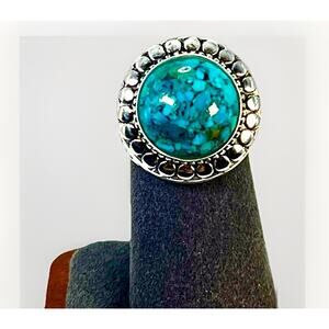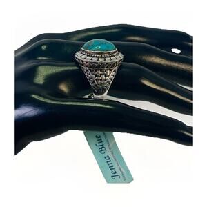 STERLING SILVER Jenna Blue Cabochon TURQUOISE Domed Ring Size 7 - Vintage NOS