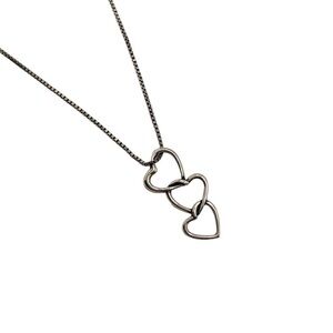 STERLING SILVER NECKLACE Triple floating hearts Box chain 20" Whimsical Like new