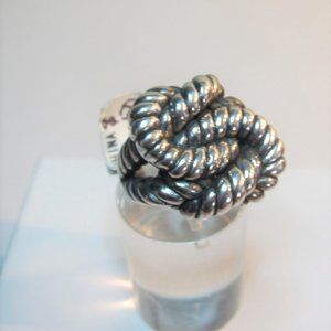 This Sterling Silver ring is inspired by one of your favorite designers. You can tell by the cable design. This looks like a heavy ring, but it's very light. The cable is a hollow design and the band is solid. It's a very comfortable ring and available in two sizes. I'm not sure it can be sized. It's stamped 925 on the inside. Great ring for the price!