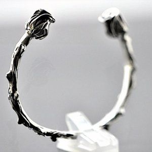 STERLING SILVER ROSE FLOWER BANGLE BRACELET