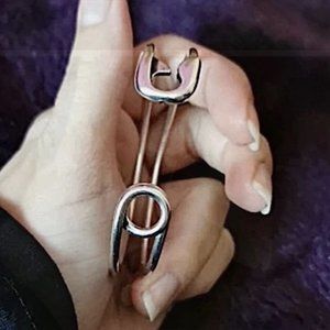 STERLING SILVER SAFETY PIN BANGLE BRACELET ADJUSTABLE RESIZABLE
