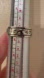 This is the perfect ring! The size is extremely comfortable. The band in the middle twirls around. It is thin enough to be comfortable on your fingers. Yet it is thick enough to feel like a substantial piece. This is one of my favorites. It has an abstract floral design etched into the silver. Stamped 925. Comes with a gift box and five Sterling silver cleaning cloths.