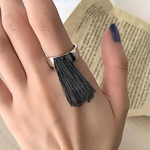 New sterling silver tassel design adjustable resizable ring. PLEASE NOTE TASSEL IS SILVER IN COLOR PIC UPLOADED ABOVE.