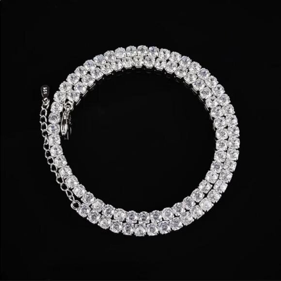 STERLING SILVER TENNIS DIAMOND CHOKER NECKLACE, NICE NECKLACE, CUTE NECKLACE