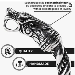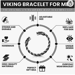 Sterling silver plated Viking wolf cuff bangle bracelet vintage style arm band. Fits 6”-10” Adjustable, resizable