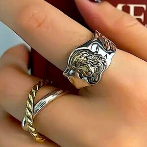Sterling silver and 18k gold plated vintage goddess ring with matching complimentary sterling silver 18k gold plated ring.