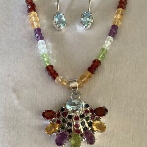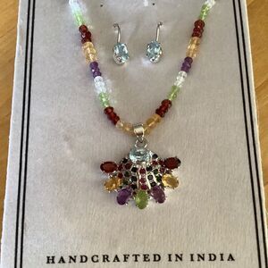 STERLING SILVER 925 MULTICOLORED GEMSTONE NECKLACE/EARRINGS SET
