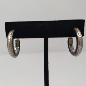 BEAUTIFUL STERLING SILVER POST HOOP EARRINGS WITH BLUE LAPIS INLAY ON SIDES.