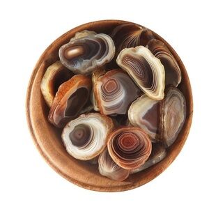 Named for the area in Africa where it is mined, Botswana Agate is called the Sunset Stone because it retains sunlight and comforts people through dark, lonely nights. It was traditionally used in African fertility ceremonies to encourage potency and the conception of strong, healthy offspring.