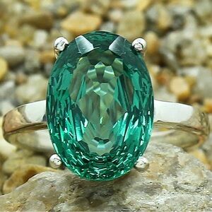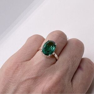 STERLING Silver Faceted Green Tourmaline Healing Crystal Ring
