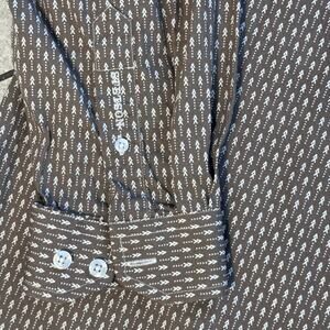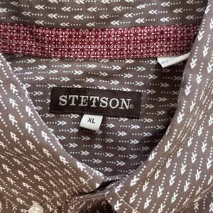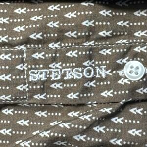 Fantastic STETSON Arrowhead print Brown Button Down Logo Men's Shirt in XL is a classic western cowboy-inspired piece perfect for various occasions. In excellent condition, recently drycleaned.