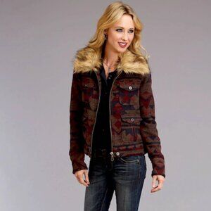 STETSON - Women’s Aztec Blanket Jacket (with Removable Fur Collar) - NWT - M