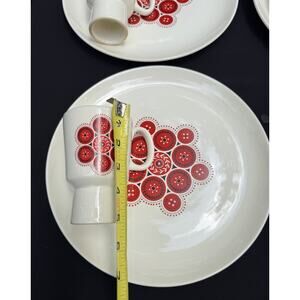 This listing is for an incredible estate sale find; it is for eight (8) pieces of vintage/retro Steubenville pottery in the Bandana pattern. The set includes:4 large (11 1/4" in diameter) dinner/chop plates and 4 cups/mugs, that when inverted function as egg holders!