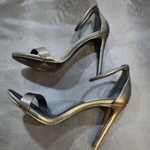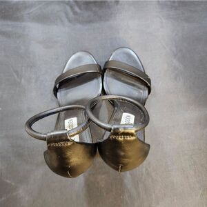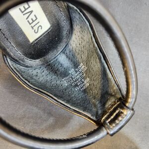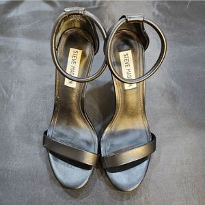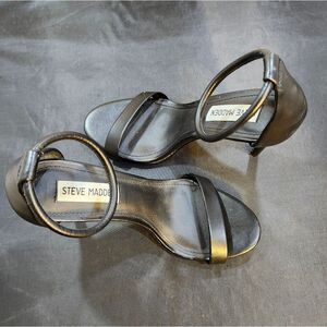 STEVE MADDEN ALMOND TOE ANKLE STRAP SANDAL SIZE 6.5M COLOR BLACK ALMOND TOE ANKLE-STRAP CLOSUREWe'll make sure your shoes keep you one stylish step ahead of the crowd Whether you're keeping it simple in sliders, living the high life in heels or joining the fash pack in flatforms, you'll be heading to shoe heaven with our all man-made materials lining upper balance textile upper man-made material fashion-forward footwear collection. Boots are your day-to-night best friend, giving a floral dress that tough twist - add a biker jacket for even more attitude. Find your summer feet in jelly sandals and enjoy balmy nights in block heels. Heel height measurements approximately 4"inched upper synthetic suede Lining synthetic material Outer synthetic materialsTHIS ITEMS IS PRE-OWNED EXCELLENT CONDITION WITH ONLY LIGHT SIGNS OF WEAR IF ANY CHECK THE PICTURES (FYI THE FIRST PICTURES IS JUST A MODEL TO SHOW WHAT THE SHOE LOOK ON CHECK THE PICTURES)