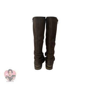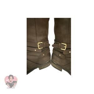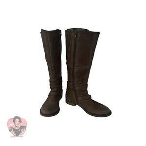 We're all about the Albany for now and years to come! The Steve Madden Albany Leather Belted Riding Boots take a knee-high riding boot in buttery smooth, burnished tan leather and wrap three thin belts around the ankle for a subtle-yet-stunning accent, with one golden buckle and two golden hole-punch fasteners. A slender golden metallic accent cups the heel for a subtle helping of shine. Elastic gusset at opening. 1" wooden block heel. Cushioned insole and flannel fabric lining. Non-skid rubber sole. Fit runs narrow (round up if you're between sizes). Leather upper. Balance man made.