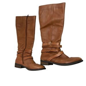 STEVE MADDEN Albany Tall Cognac Brown Leather Equestrian Riding Boot Size 8