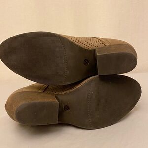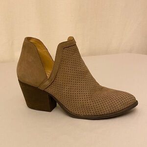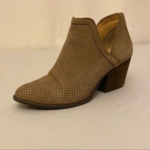 STEVE MADDEN Amerisa Leather Booties Boot Brown Block Heel Sz 8 Taupe Perforated
