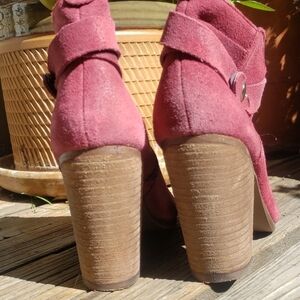Gold hardware Rich, distressed suede intensifies the earthy appeal of a stacked-heel ankle boot. 4" boot shaft. Side zip closure.Leather upper/textile and synthetic lining/synthetic sole.