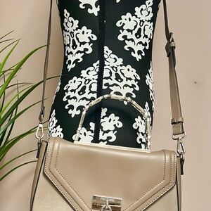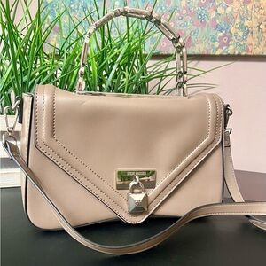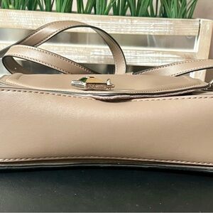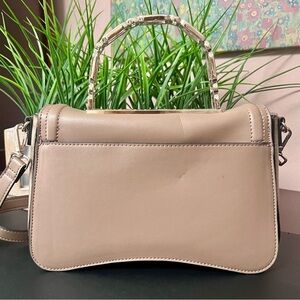 This gently-loved crossbody and satchel bag is known for its structured, rectangular shape and the combinations of handle and strap options. It became popular for its chic, functional design and variety of colors. This bag is shown in the color, mushroom.