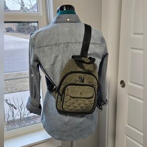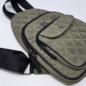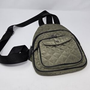 STEVE MADDEN BHOOK QUILTED SLING BAG BACK PACK SMALL OLIVE GREEN BLACK WOMEN