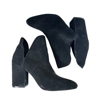 From Steve Madden are these, "the Rookie," rich black genuine leather ankle boots! Featuring a chunky heel and deep cut sides, slip-on, suede heeled! 3.5" heel, 4.5" rise, 8" opening at top! Size 8.5M, gorgeous! Excellent! Superb EUC Condition! **ABSOLUTELY GUARANTEED CONDITION: EUC MINTY-EXCELLENT TO LIKE-NEW, by Lily @HauteClub!***