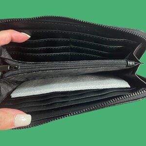 STEVE MADDEN BLACK LEATHER EMBOSSED LONG WALLET WRISTLET NWT