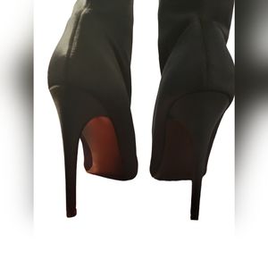 Pointy-toe Sock Boots IN BLACK/ PULL UP to put on. Its stretchy material fits most ankles, 3.5 inch heel