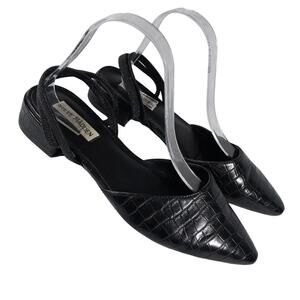 STEVE MADDEN! BLACK VEGAN LEATHER CROCO IMPRINT POINTY TOE LOW HEELS! SZ 8.5M