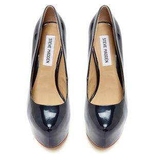 STEVE MADDEN BLK PATENT DEJAVU PLATFORM STILETTOS