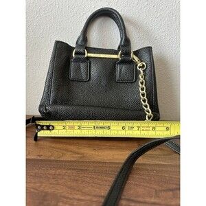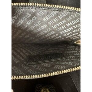 Elevate your style with this chic Steve Madden crossbody bag. Crafted from high-quality faux leather, this black bag features a gold chain accent and hardware. The small size makes it perfect for carrying your essentials, while the crossbody strap adds a touch of convenience and style. The interior is lined with black fabric and features enough space for all your belongings. Whether you're heading to work or out for a night on the town, this bag is the perfect accessory to complete any outfit.