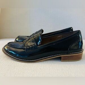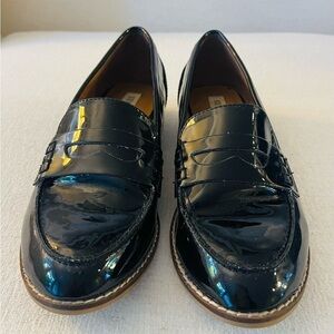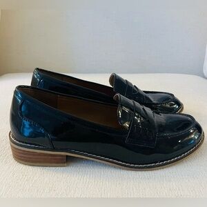 Steve Madden black patent penny loafers. One inch wood block heel. Very good used condition. A few small scuffs on the inner part of the shoes. Perfect for fall and winter! Size 6. Offers welcome.