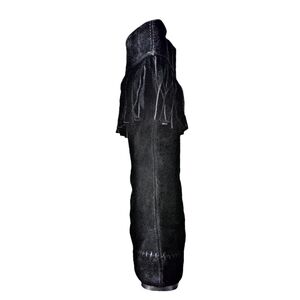 STEVE MADDEN Black Suede Fringe Moccasin Boots Boho 9 Spain