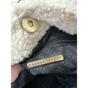 STEVE MADDEN Black Vegan Leather Shearling Extra Large Hobo Purse Bag Tote