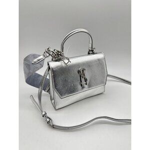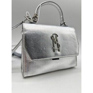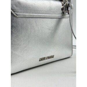 STEVE MADDEN Blattuca logo metallic top handle crossbody bag -Silver (Used)
