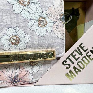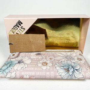 STEVE MADDEN Blush Floral Multi Logo Bar Trifold Wallet Wristlet NEW WITH TAG!!!