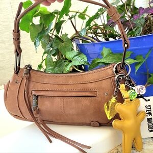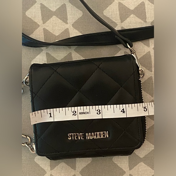 This stylish Steve Madden Bmarilyn crossbody bag is perfect for on-the-go fashionistas. The black faux-leather bag features a trendy chevron pattern, with a chic chain link character detail and silver hardware accents. It has a convenient zip closure and a comfortable crossbody strap in black faux-leather. The bag is small but spacious enough to hold your essentials, with inner pockets and dividers to keep you organized. It's lightweight and perfect for both travel and casual occasions, with a modern and designer theme that's sure to turn heads. Get yours today!